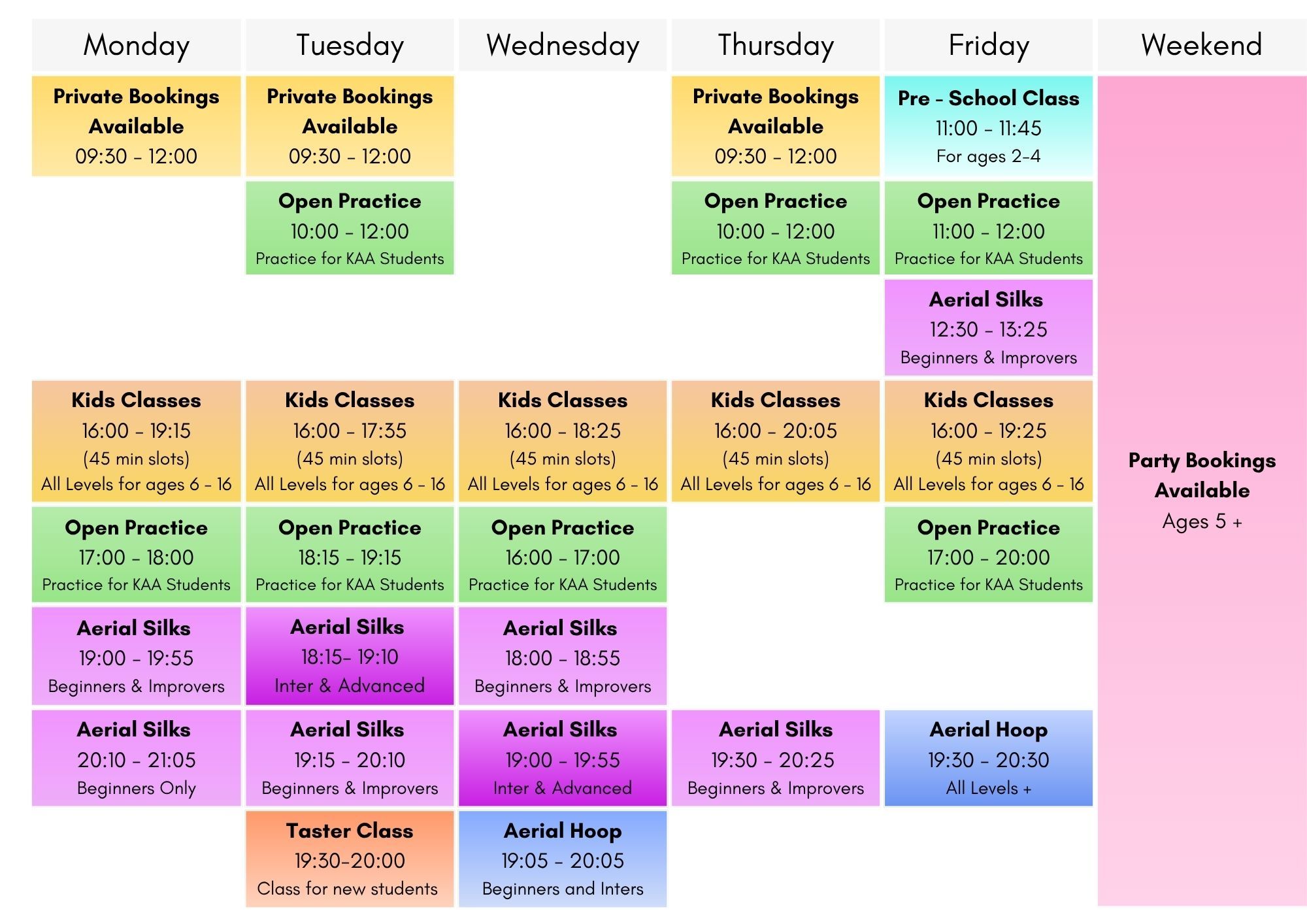 If you’re free on Tuesday, our 7:30pm Aerial Silks taster is ready to book now. Scroll Down to see Direct Link for booking!